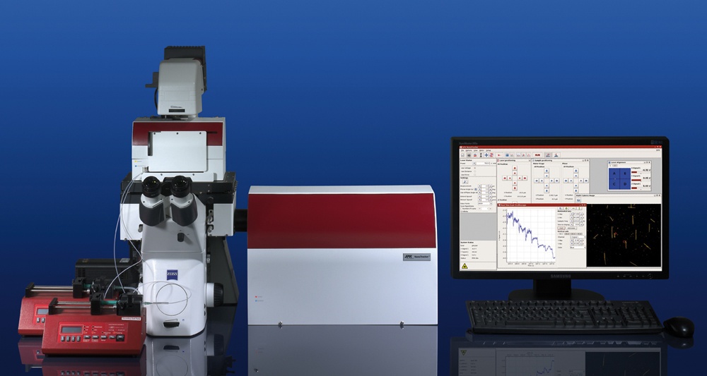 Nanotracker™很容易与研究型倒置显微镜如国际大品牌蔡司、尼康和奥林巴斯等联 合使用。表面荧光或共聚焦显微镜技术能够与Nanotracker™一起使用形成一个强有力 的组合仪器。用荧光技术如CLSM或FRAP与Nanotracker™跟踪实验平行地观察目 标细胞、颗粒或分子为研究分子机制开拓了视野。